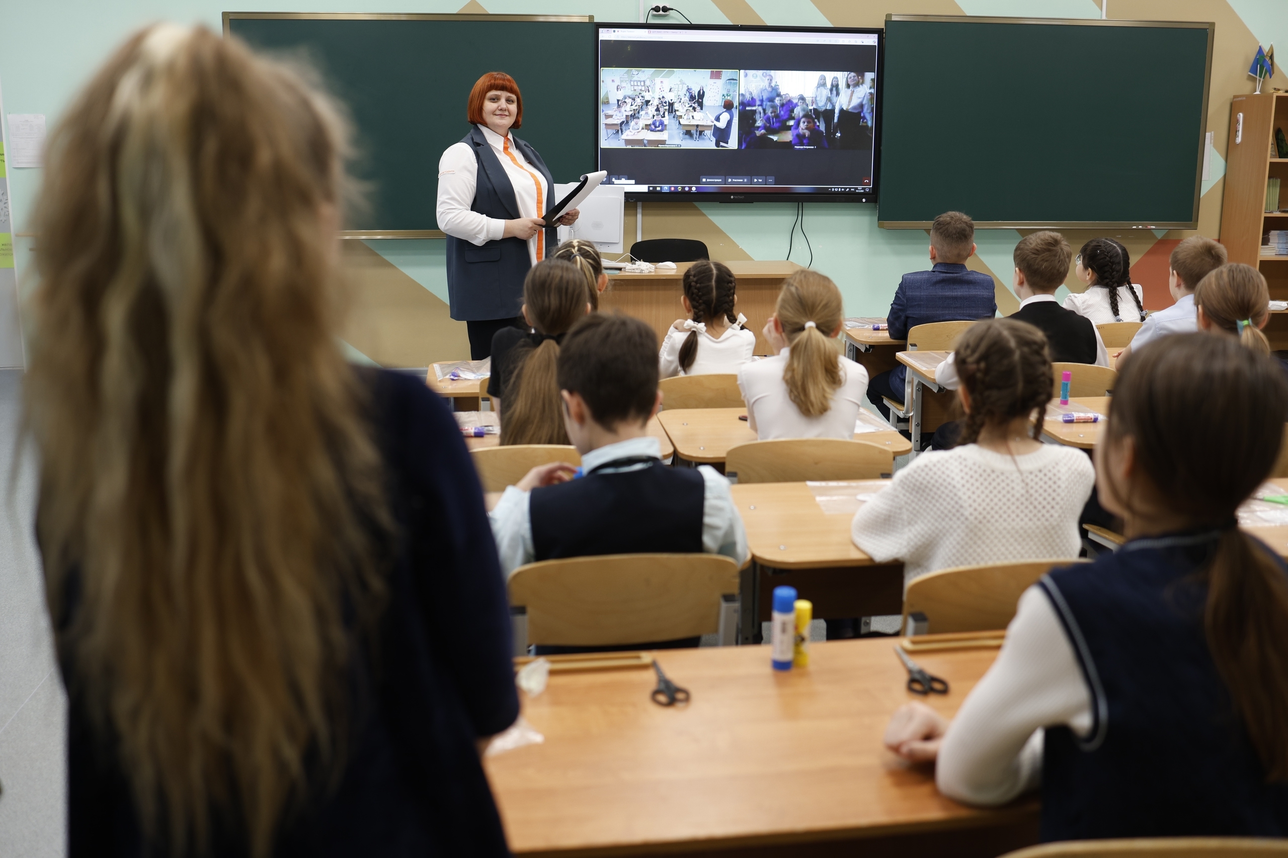 В начале встречи советники представили участников телемоста: орлят 4 классов, наставников и классных руководителей. Ребята попривестствовали друг друга в теплой дружеской атмосфере.