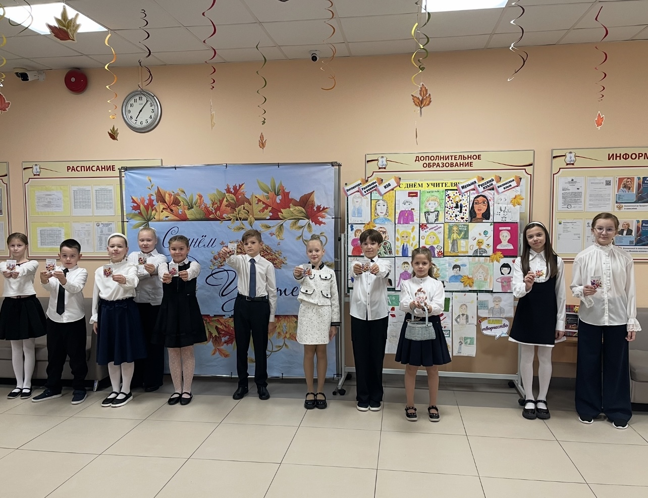 В преддверии Дня учителя 02 октября и 03 октября на отделении прогимназии работала почта поздравлений, педагоги получали письма с теплыми поздравлениями и пожеланиями от своих учеников, а также гимназисты приняли участие в различных акциях: «Открытый микрофон пожеланий. Рубрика «Спасибо, учитель!», конкурс видеопоздравлений «Любимому учителю посвящается!», конкурс творческих работ «Портрет любимого учителя!».