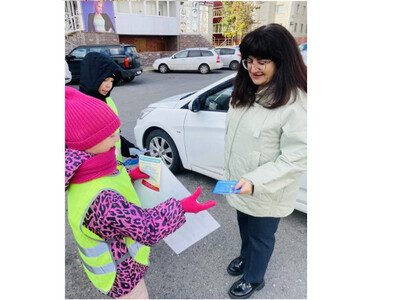 Родители и руководитель отряда Гульназ Алмазовна Муратова проводили беседы с водителями о неукоснительном соблюдении скоростного режима на дороге, о соблюдении правил перевозки пассажиров на автомобиле.