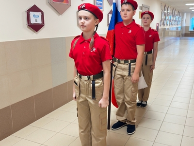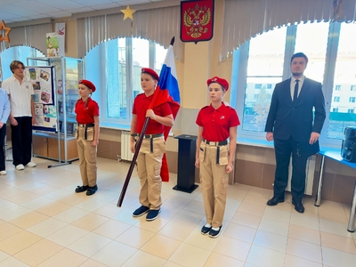 Почетное право для выноса и установки на особую подставку Государственного флага Российской Федерации было предоставлено знамённой группе юнармейцев.