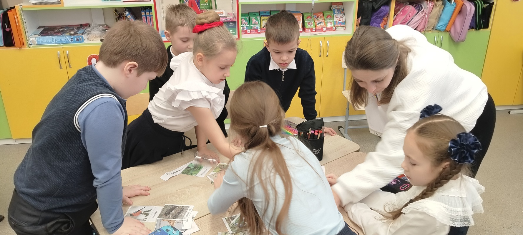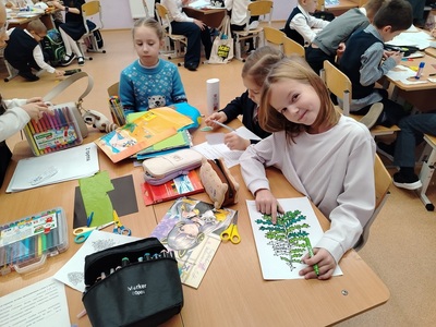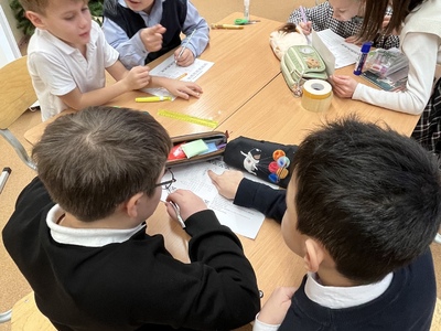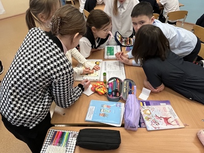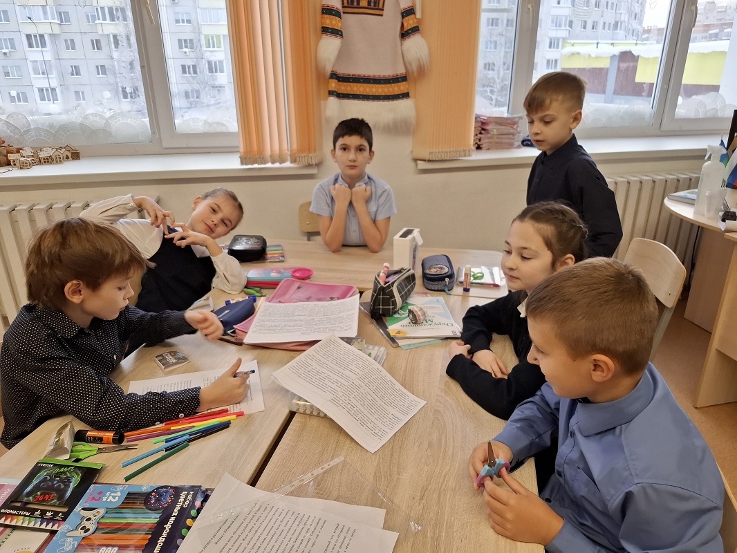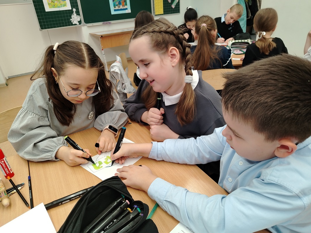 Занятие прошло в формате интегрированной творческой работы: ребята объединились в группы и выполняли задания, объединяющие знания из разных предметных областей — русского языка, математики, окружающего мира, английского языка, литературного чтения.