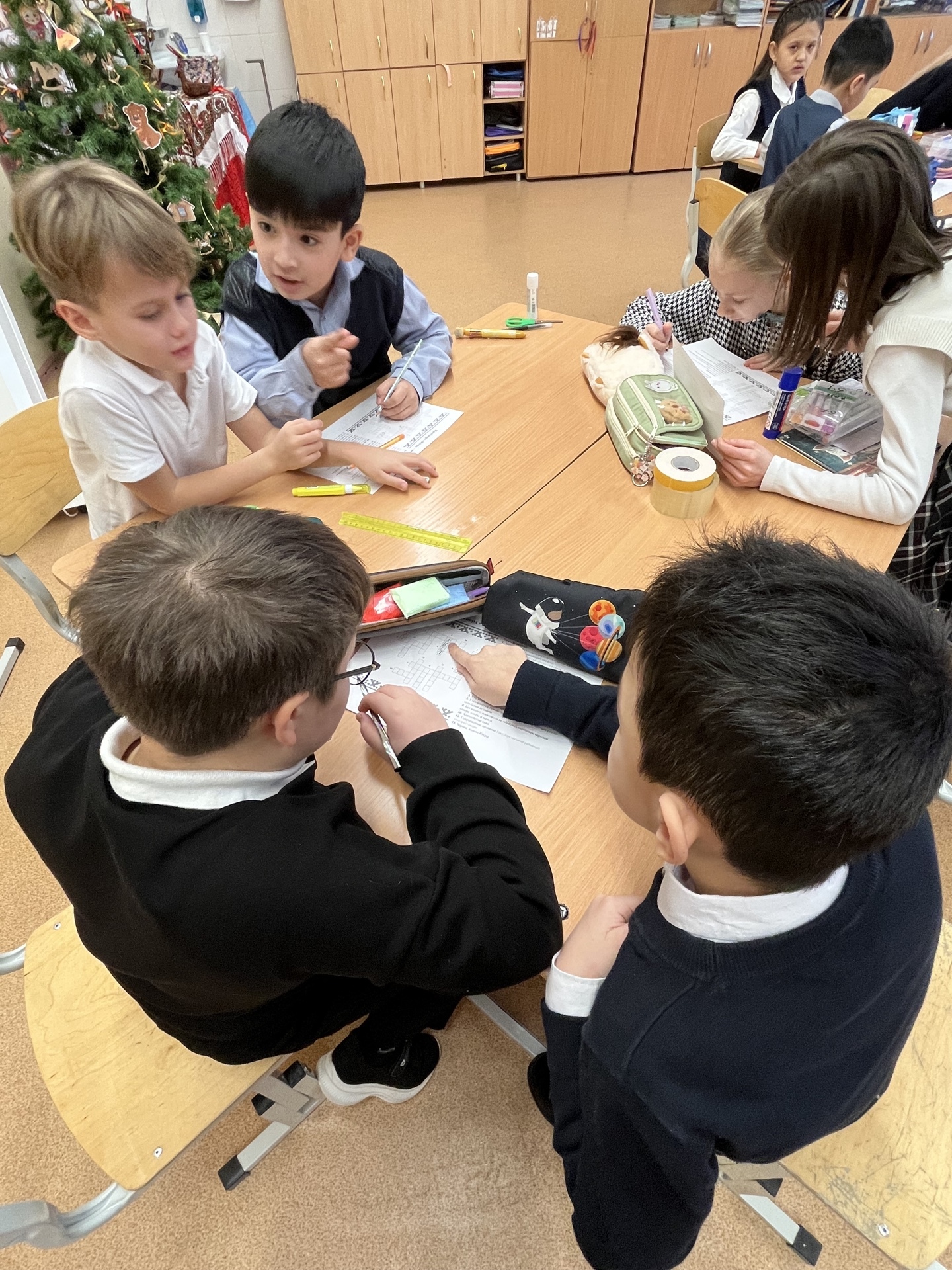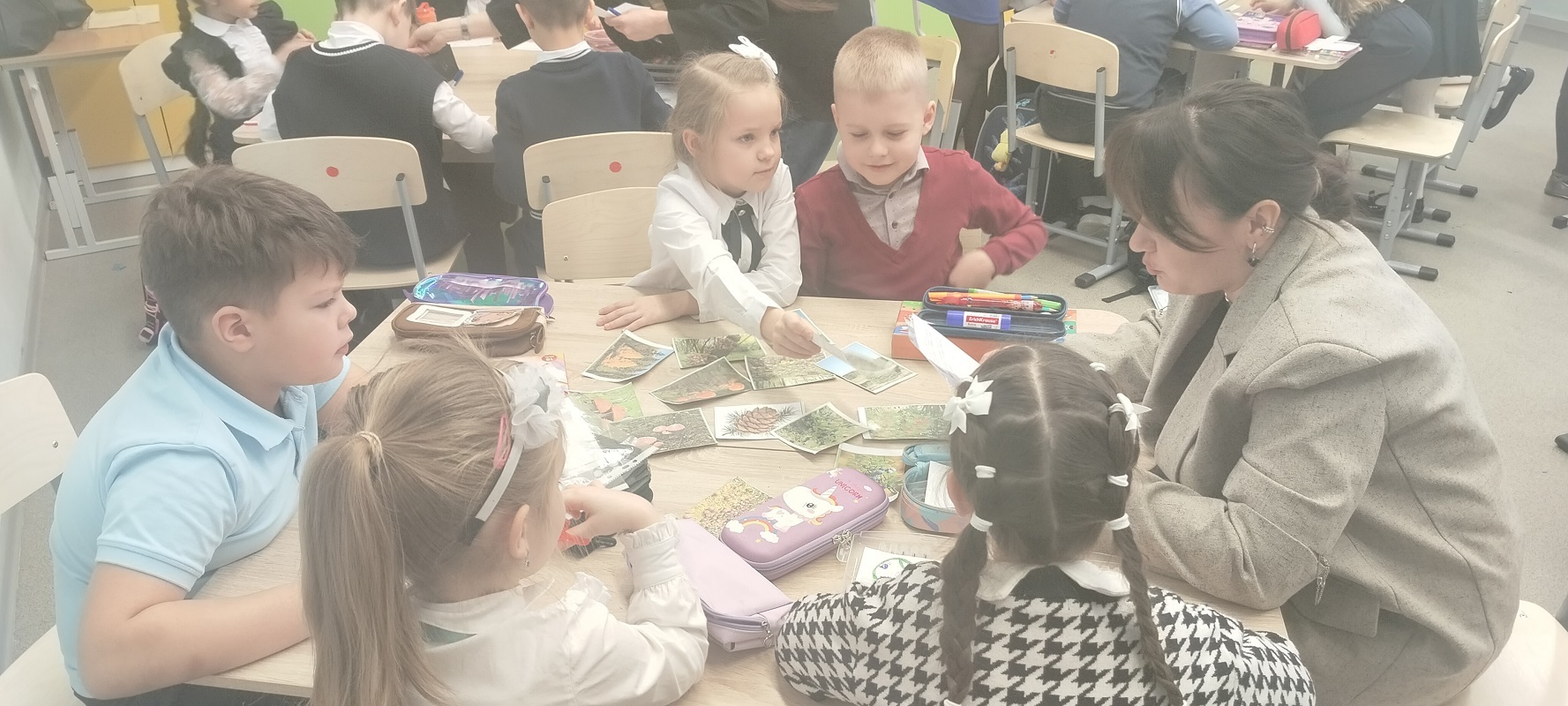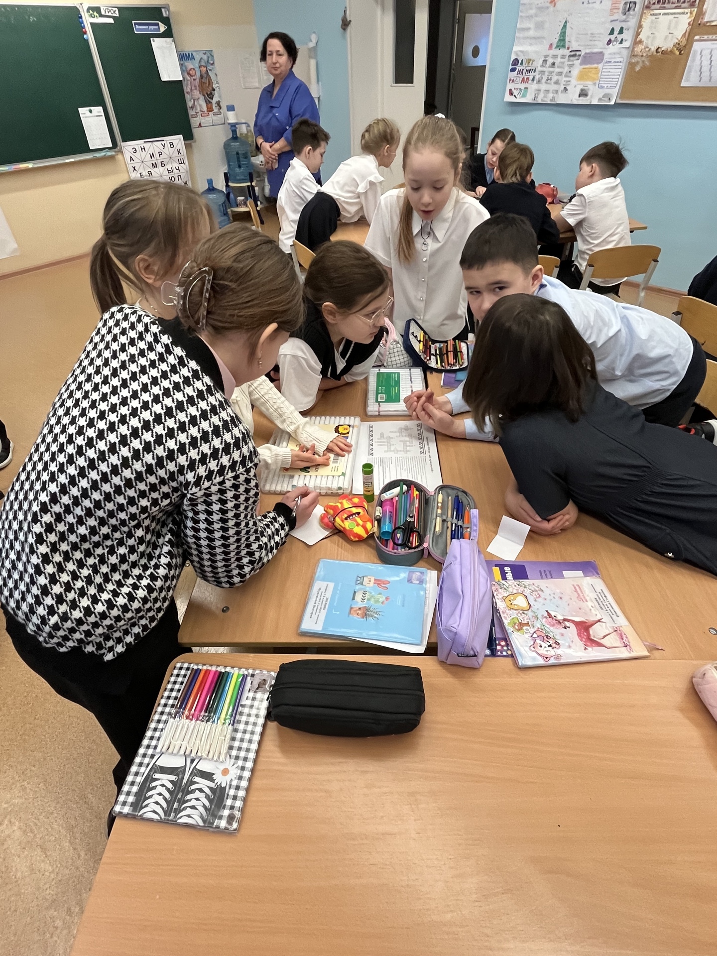 Занятие прошло в формате интегрированной творческой работы: ребята объединились в группы и выполняли задания, объединяющие знания из разных предметных областей — русского языка, математики, окружающего мира, английского языка, литературного чтения.