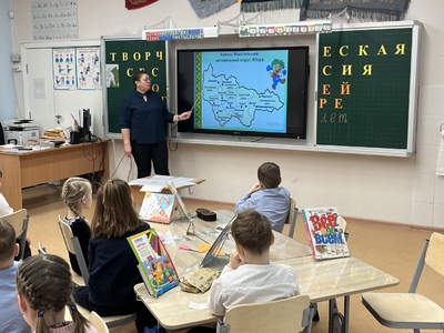 Учащиеся посмотрели краткий видеоролик о Югре, рассмотрели фотографии природы и городов региона, обсудили, чем знаменита их малая родина.