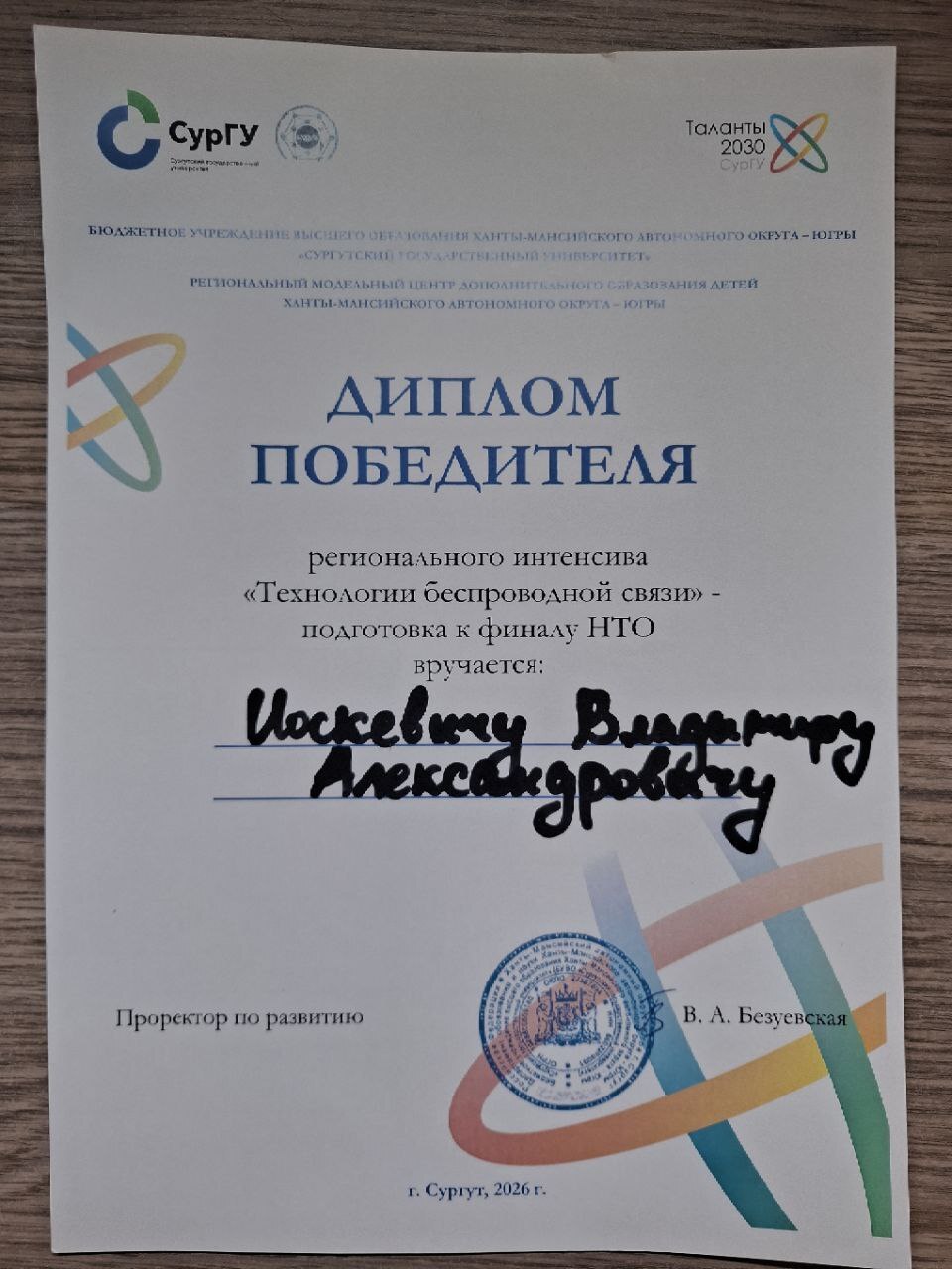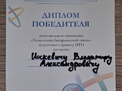 Интенсив завершился подведением итогов. Поздравляем Иоскевича Владимира с победой на интенсиве «Технологии беспроводной связи: подготовка к финалу».