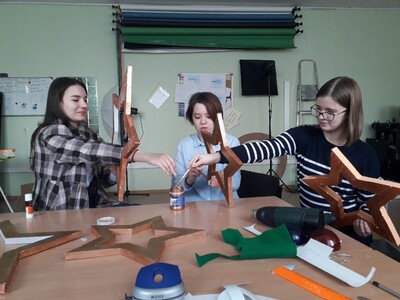 Свои способности участники обучения применяют при тематическом оформлении информационно-эстетической среды гимназии, а также участвуют в конкурсах, предлагаемых Движением первых, муниципальных, региональных и федеральных конкурсах и проводят мастер-классы для гимназистов.